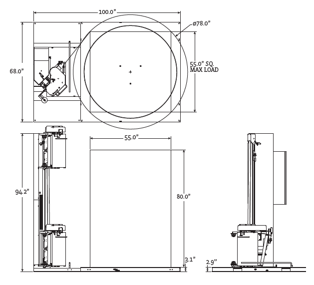 The S-Carriage: One of biggest advances in film carriage technology, the S-Carriage which in addition to a consistent film-saving 260% prestretch, further maximizes film yield another 5 to 15% by reducing film neckdown (width reduction). Film-force-to-load corners compensation ensures consistent load stabilizing film tension that won't crush corners. S-Carriage InstaThread™ Film Delivery System The unique roller pattern provides over 180% of film-to-roller contact, ensuring consistent 260% film-saving prestretch, as well as fully utilizing film width for additional savings. Provides the most secure loads at the lowest possible cost. Robust Ring Bearing Support 6,000 lb. maximum load capacity, and no casters which are prone to wear and maintenance needs. Downtime is reduced. Available for field retrofit applications. 7" IntelleVue HMI User-friendly, password protected touch screen controls with up to 9 different wrap recipes. |